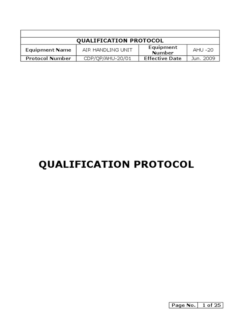 Protocol Number CDP/QP/AHU-20/01 Effective Date Jun. 2009