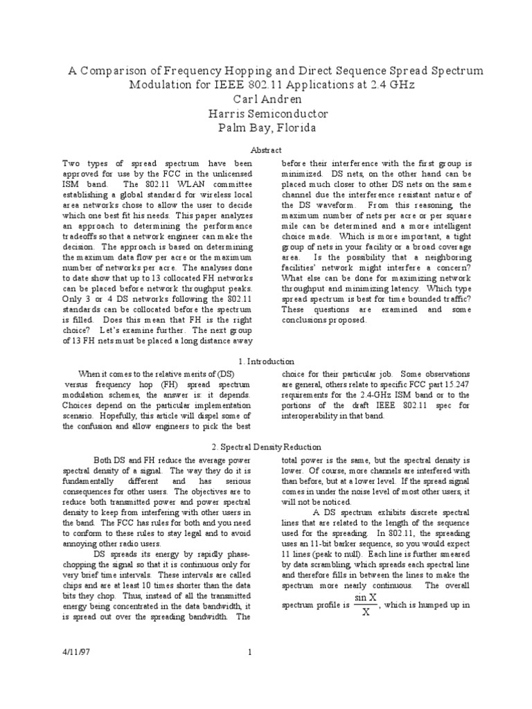 schemes. FH can be handled with a simple analog The FH scheme chosen by the 802.11 committee has