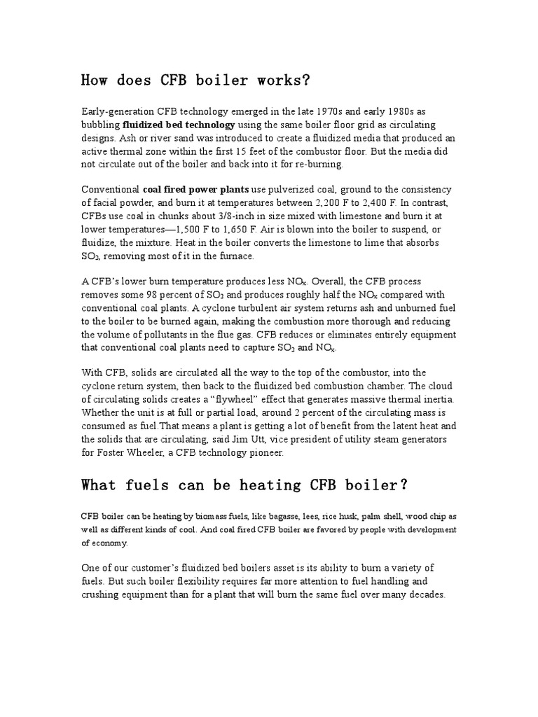A CFBs lower burn temperature produces less NOx. Overall, the CFB process