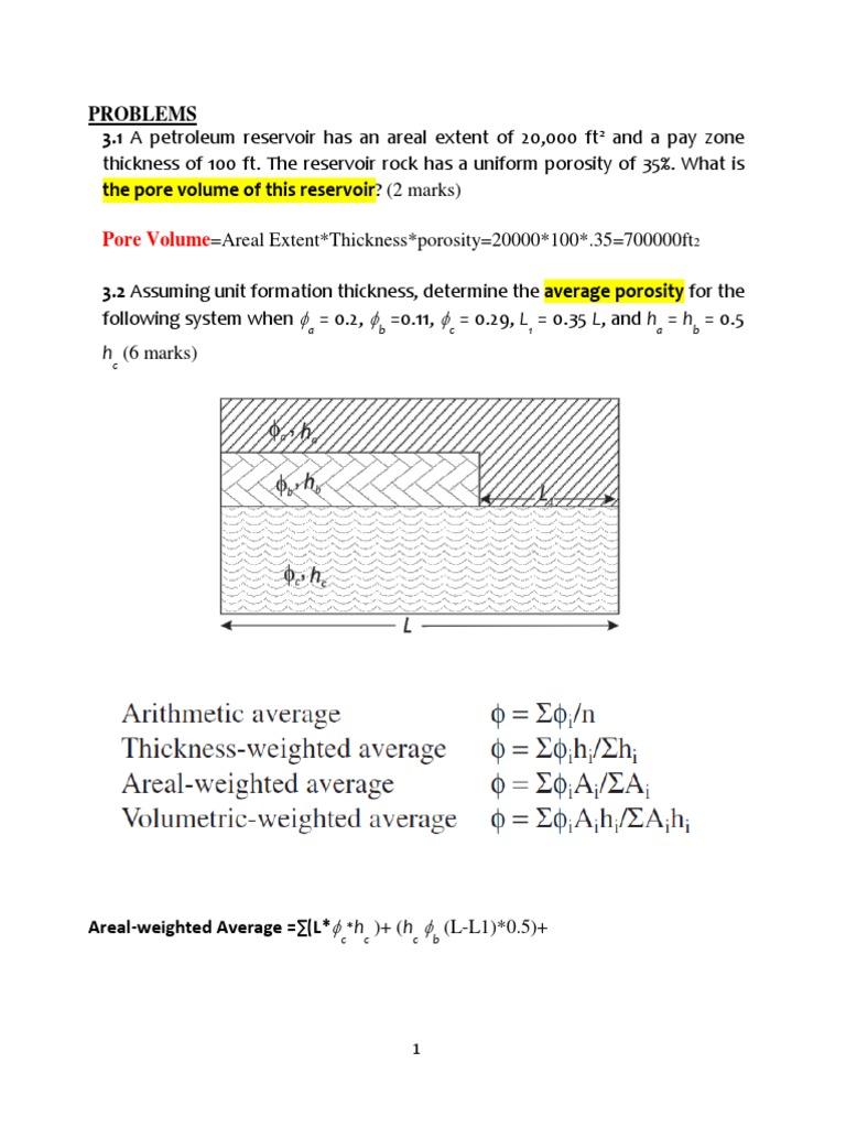 3.2 Assuming unit formation thickness, determine the average porosity for the