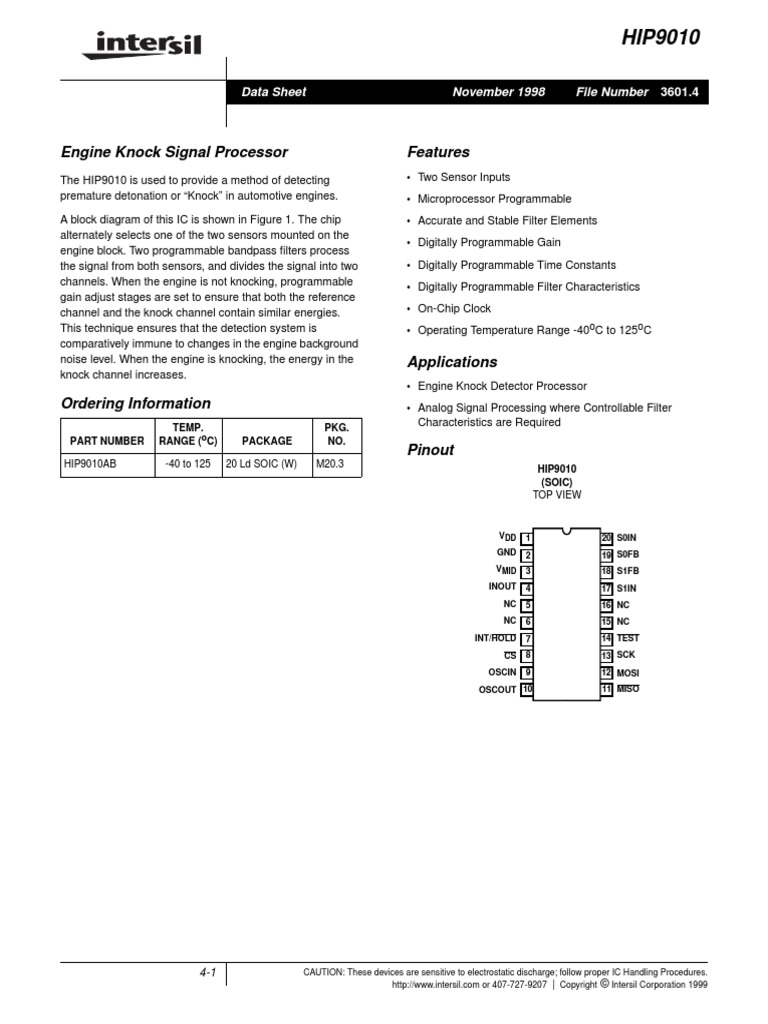 4-1 CAUTION: These devices are sensitive to electrostatic discharge; follow proper IC Handling Procedures.