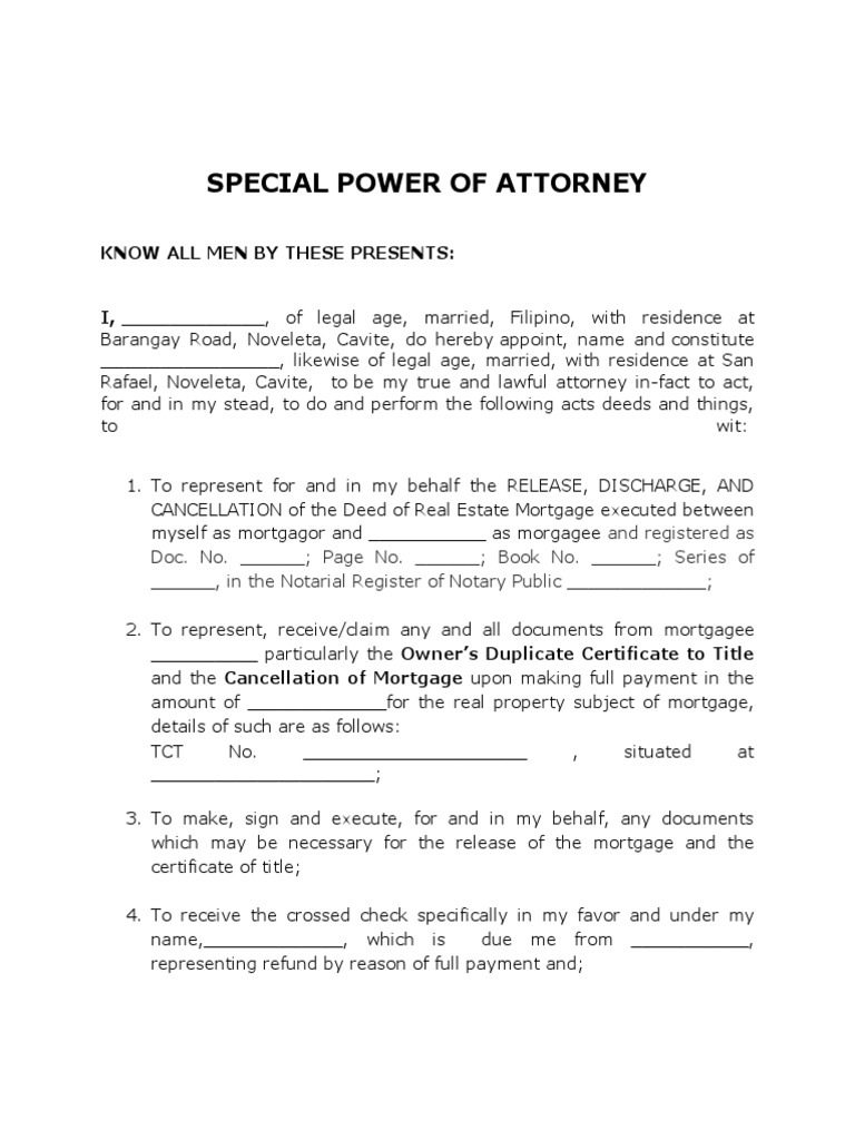 Rafael, Noveleta, Cavite, to be my true and lawful attorney in-fact to act,