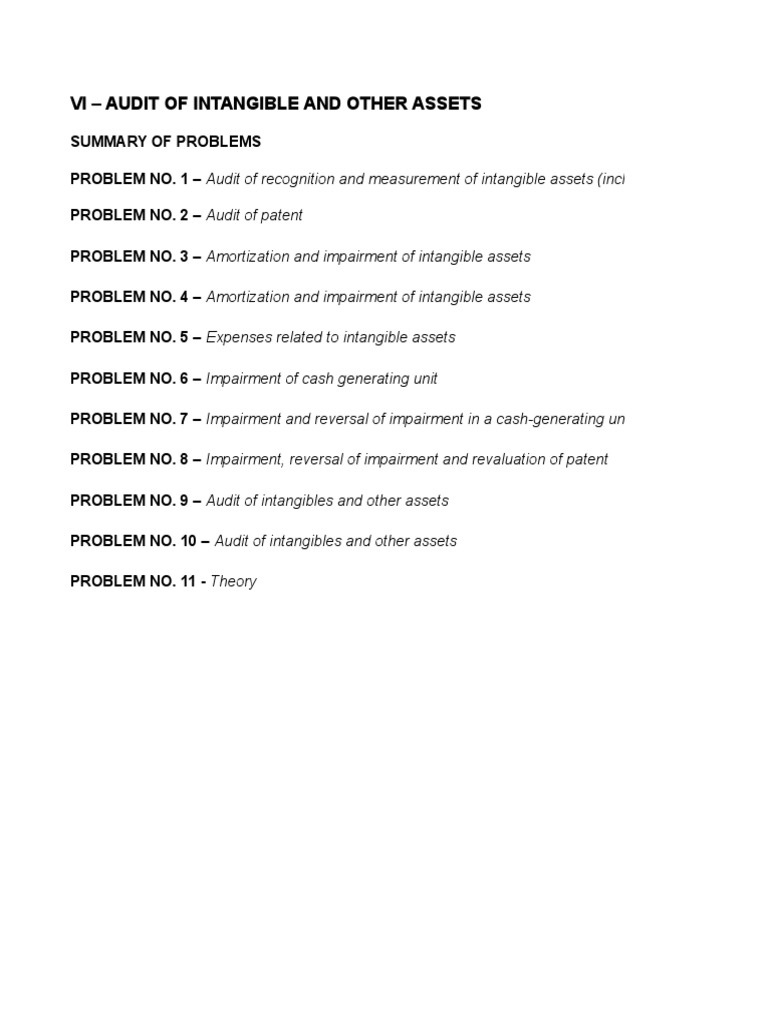 PROBLEM NO. 1 Audit of recognition and measurement of intangible assets (including preparation of a