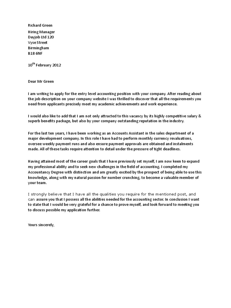 can assure you that I possess all the abilities needed for the accounting sector. In conclusion I want