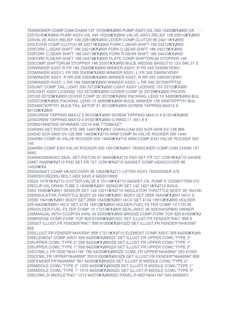 23524 14781KYJ710 COTTER,VALVE 6 15119KYJ710 GASKET,OIL PUMP 6 15326KT7000 CO