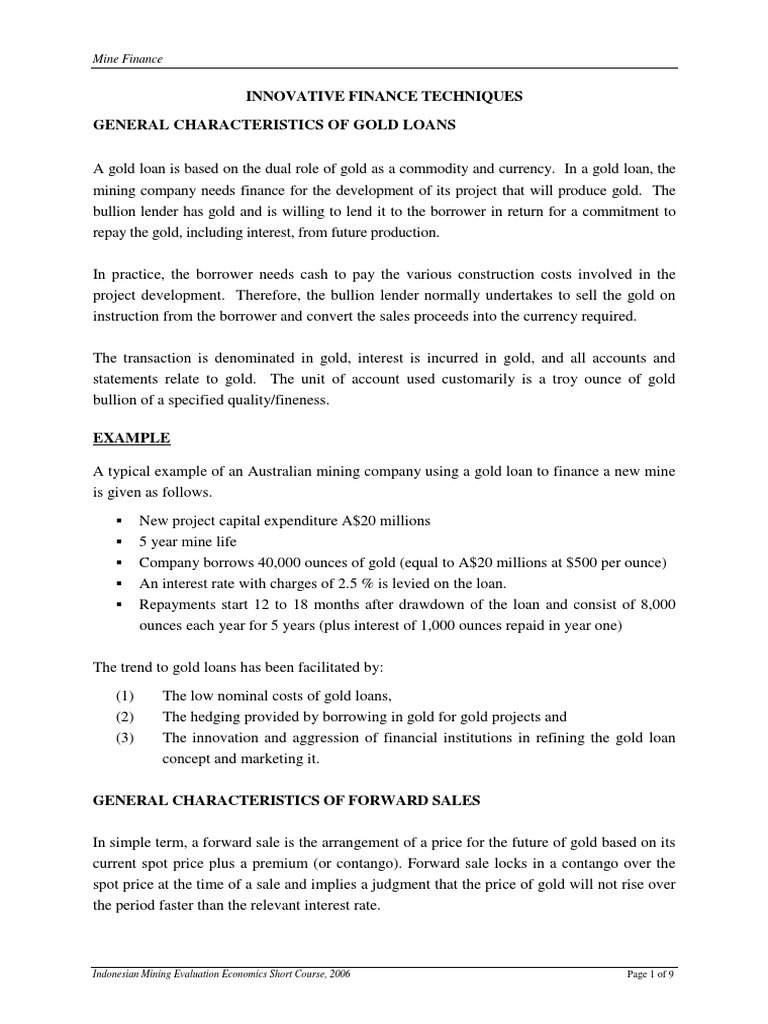 project development. Therefore, the bullion lender normally undertakes to sell the gold on