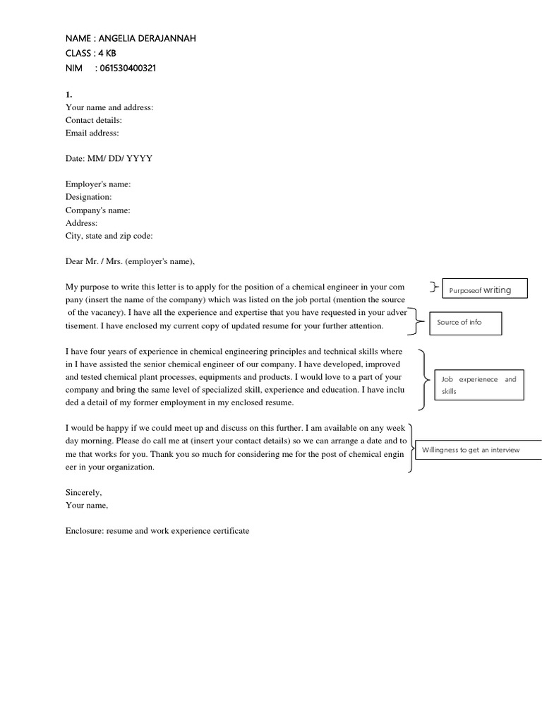 My purpose to write this letter is to apply for the position of a chemical engineer in your com Purposeof writing