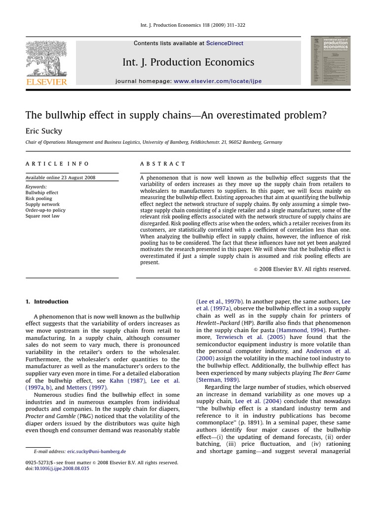 impact. International Journal of Production Economics 101 (1), 218. coordination mechanism for reducing the bullwhip effect in a supply