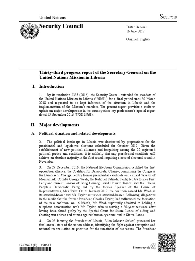 UNMIL 2017 Progress Report on Liberia