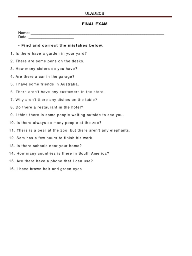 b) Is there / there is 15. any English exams that we