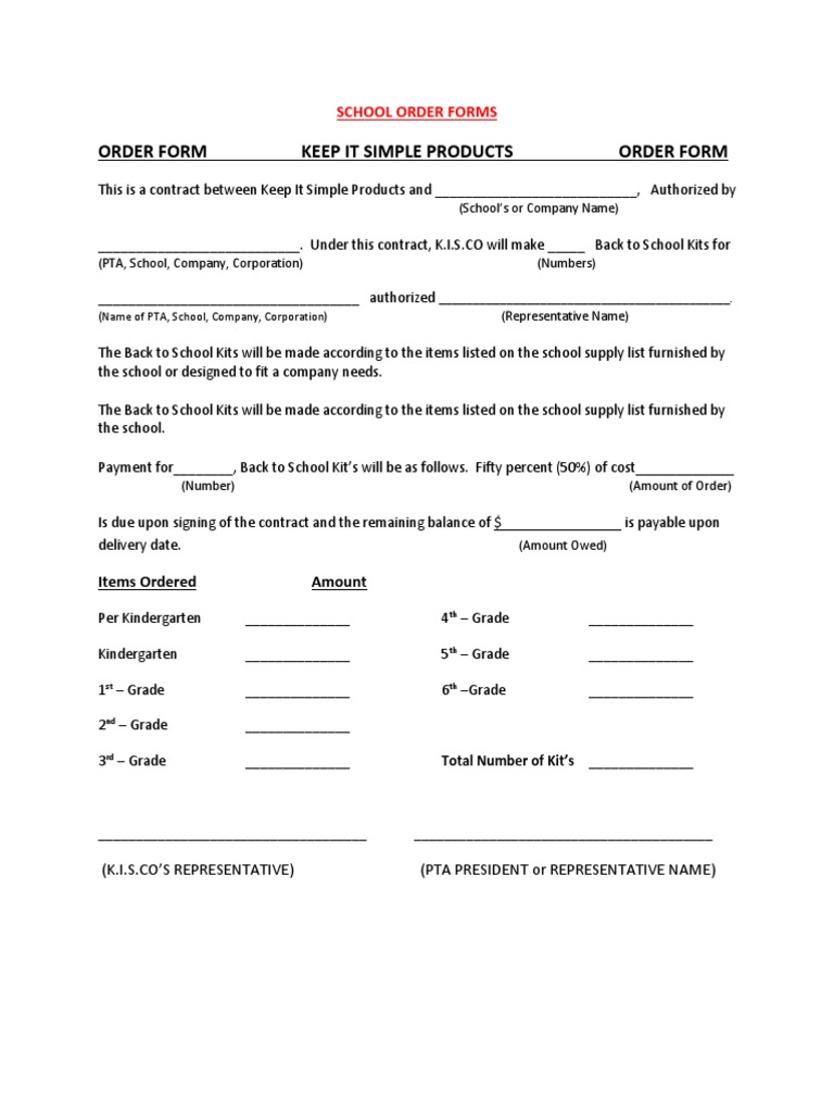 ORDER FORM KEEP IT SIMPLE PRODUCTS ORDER FORM