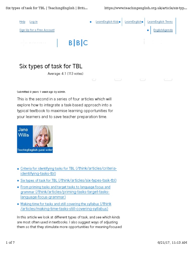 Six types of task for TBL | TeachingEnglish | Briti... https://www.teachingenglish.org.uk/article/six-typ...