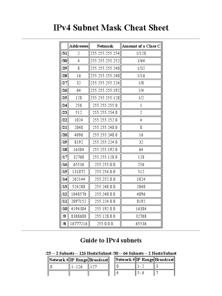 /25 -- 2 Subnets -- 126 Hosts/Subnet /30 -- 64 Subnets -- 2 Hosts/Subnet