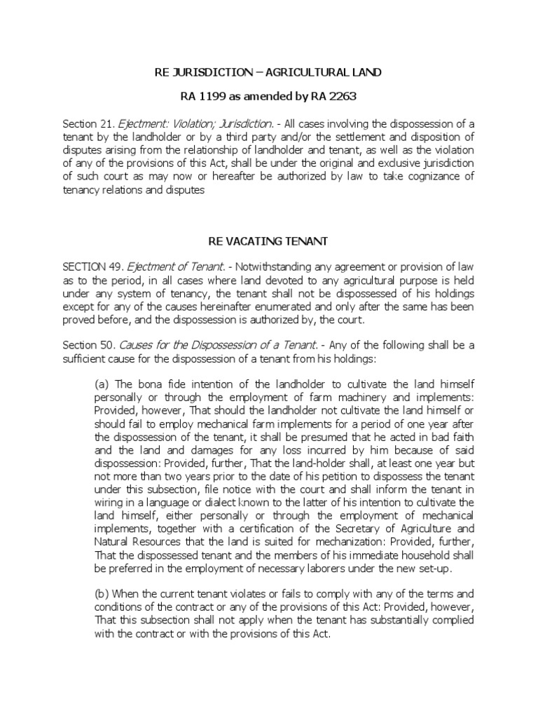 SECTION 49. Ejectment of Tenant. - Notwithstanding any agreement or provision of law
