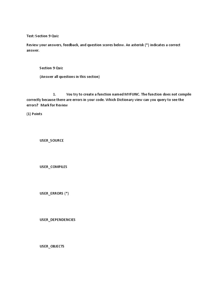 1. You have forgotten the name of the Dictionary view USER_TABLES. Which of