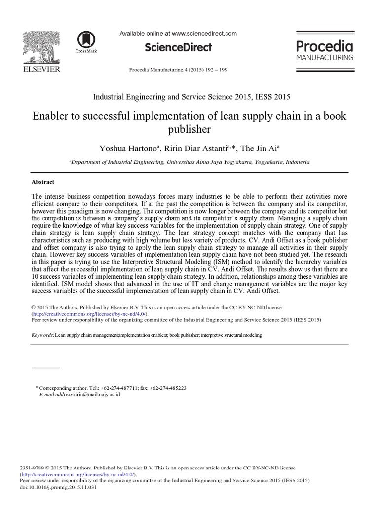 book publisher company which is CV. Andi Offset in Yogyakarta, Indonesia. A lean supply chain strategy is chosen