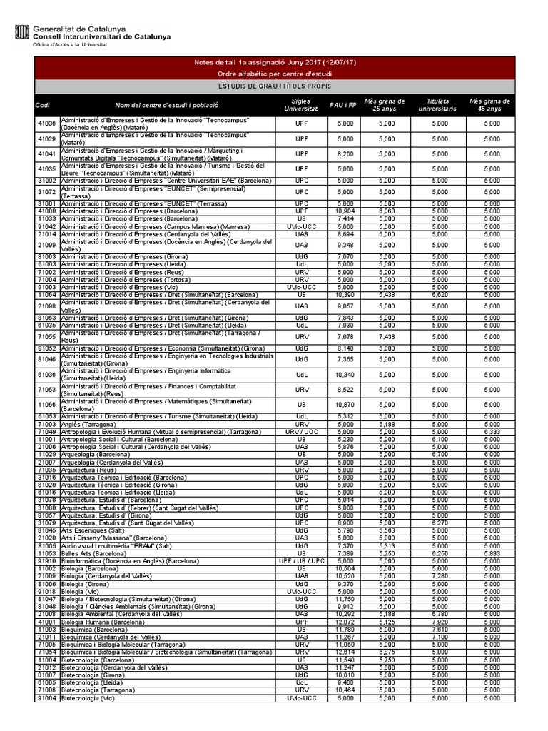 41001 Biologia Humana (Barcelona) UPF 12,072 5,125 7,928 5,000