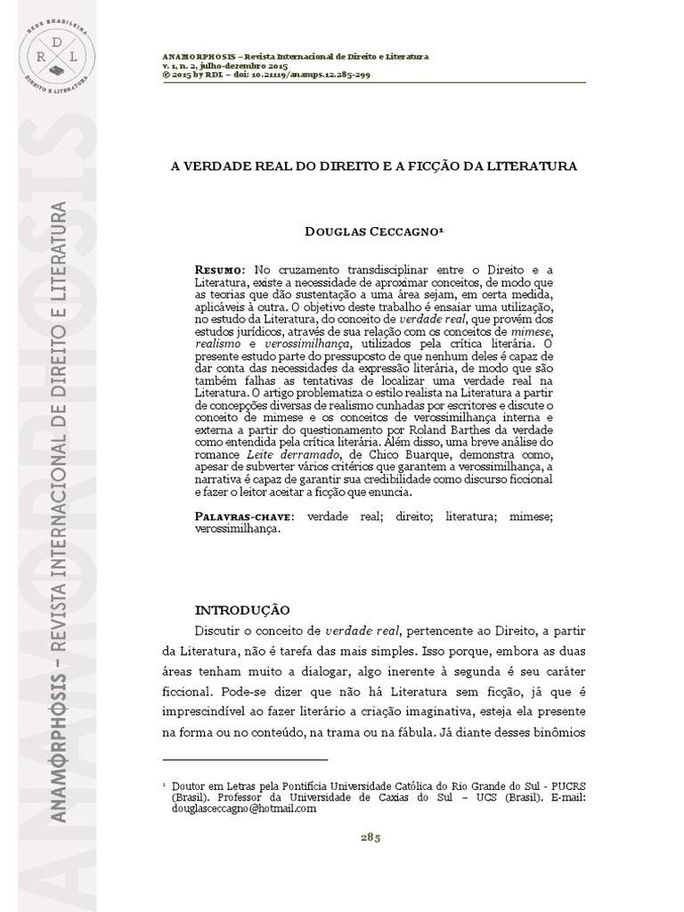 CECCAGNO | A verdade real do direito e a fico da literatura
