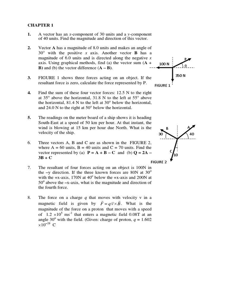 2. Vector A has a magnitude of 8.0 units and makes an angle of