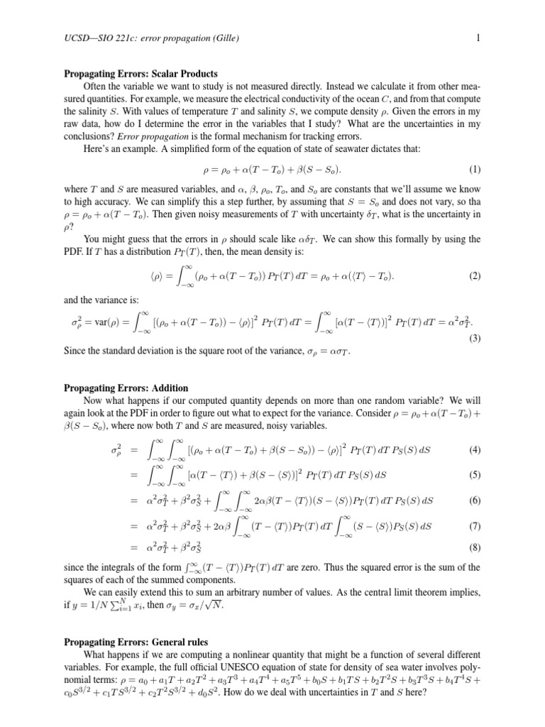 the salinity S. With values of temperature T and salinity S, we compute density . Given the errors in my