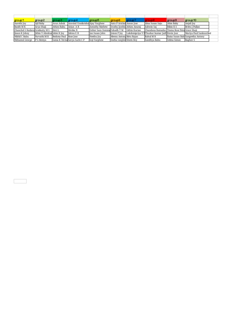 Nikhil C Babu Parvathi M R Reshma Paul Rose Jose Neethu Joy Meenu Antony Rittu Rajan Rahul M R Raisa Susan BabuSangeetha Antony