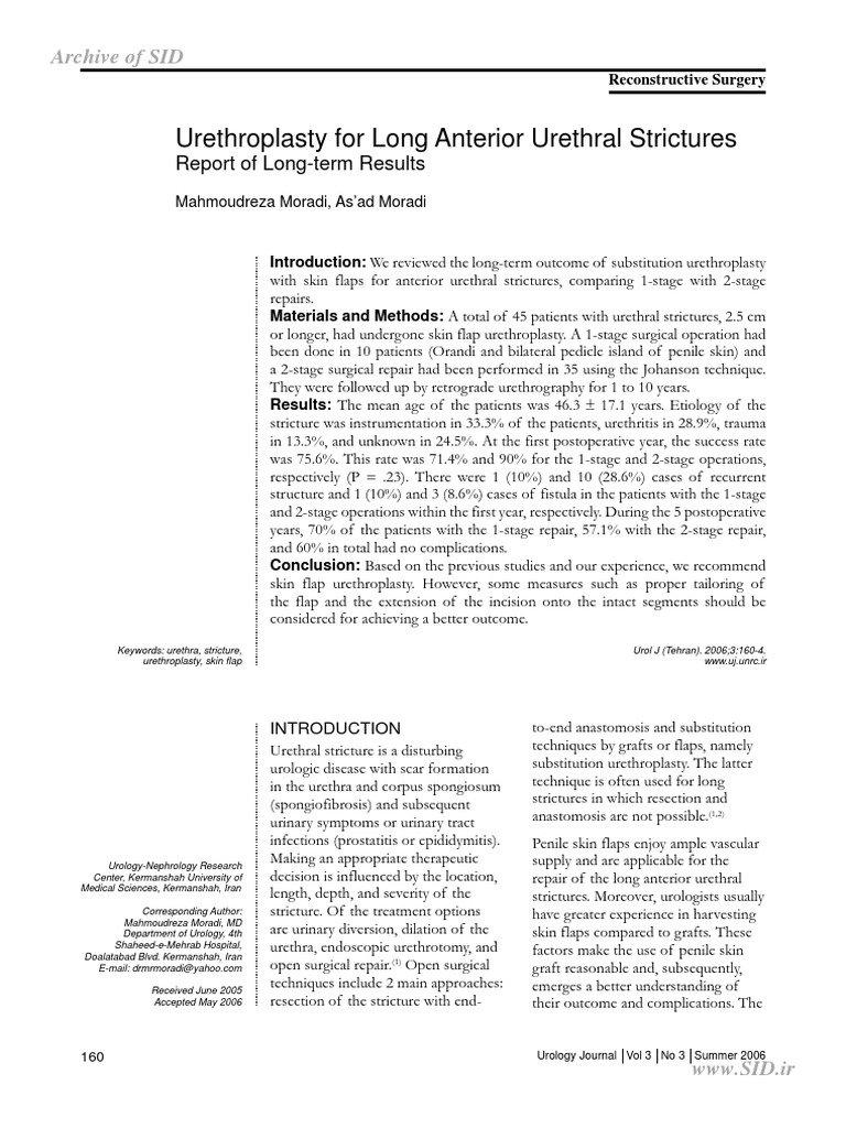 Keywords: urethra, stricture, Urol J (Tehran). 2006;3:160-4.
