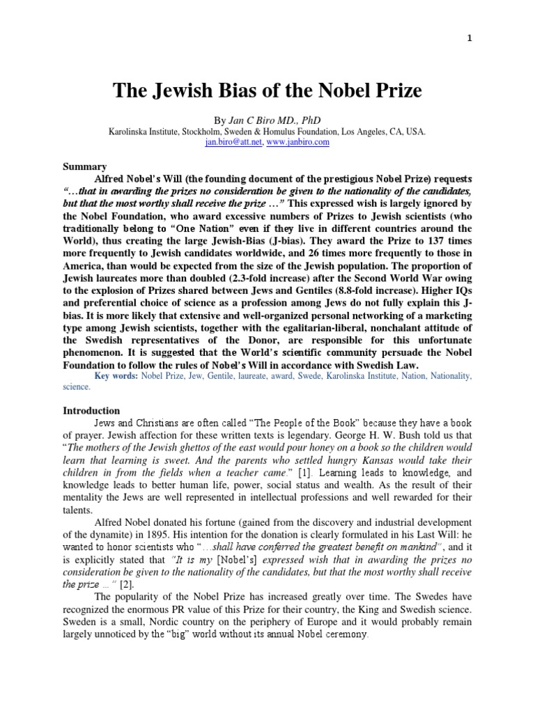 Jewish Bias of The Nobel Prize (15.3.2011)