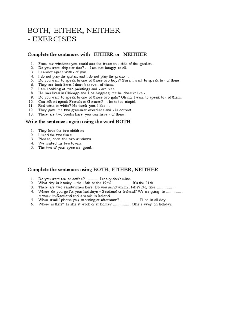 Complete the sentences using BOTH ... AND, EITHER ... OR,