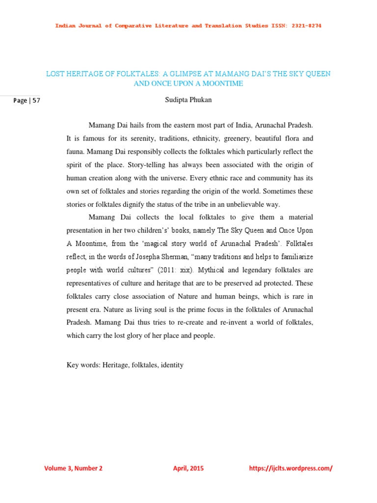 LOST HERITAGE OF FOLKTALES: A GLIMPSE AT MAMANG DAIS THE SKY QUEEN
