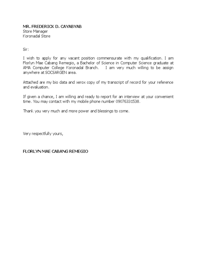 I wish to apply for any vacant position commensurate with my qualification. I am