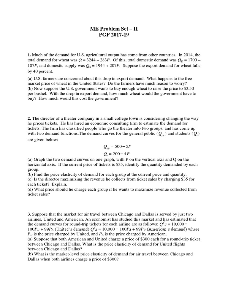 total demand for wheat was Q = 3244 283P. Of this, total domestic demand was QD = 1700