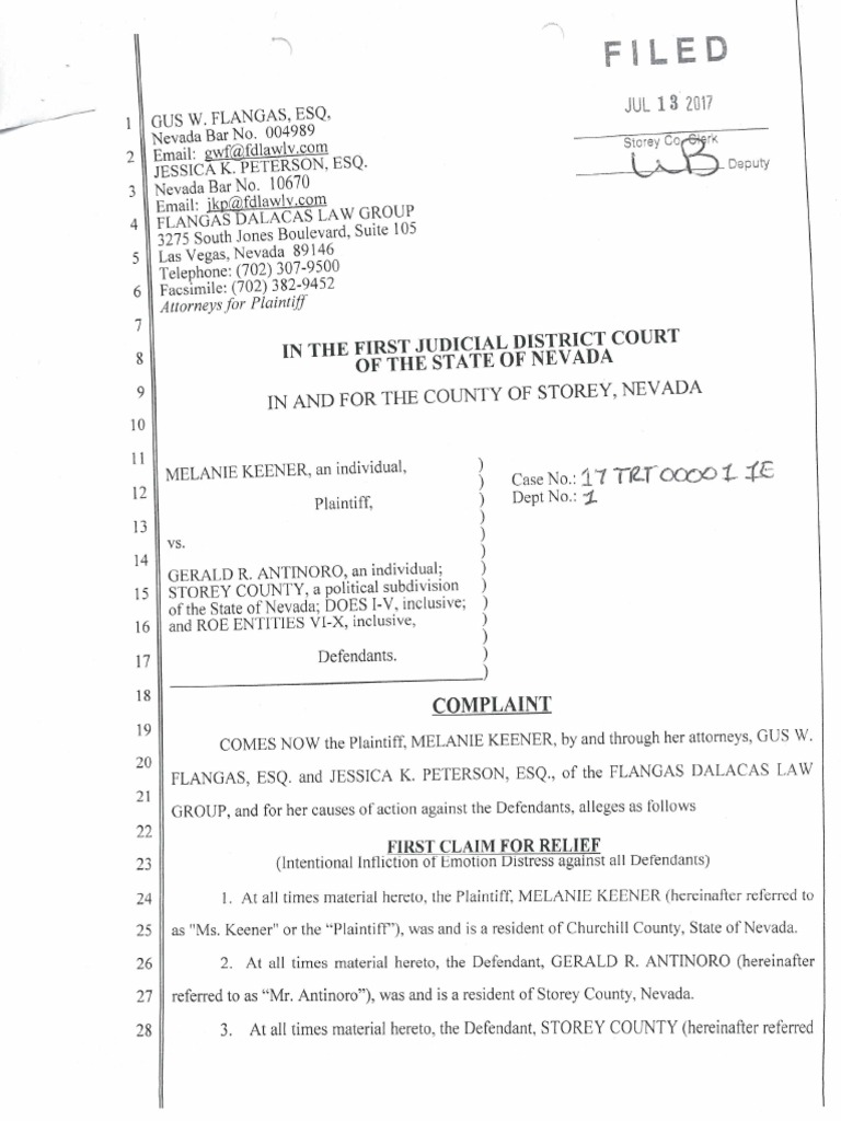 Former Chief Deputy Melanie Keener raised a lawsuit in July against Storey County Sheriff Gerald Antinoro alleging he sexually harassed her. She claims she suffered from depression after she was removed from her position.