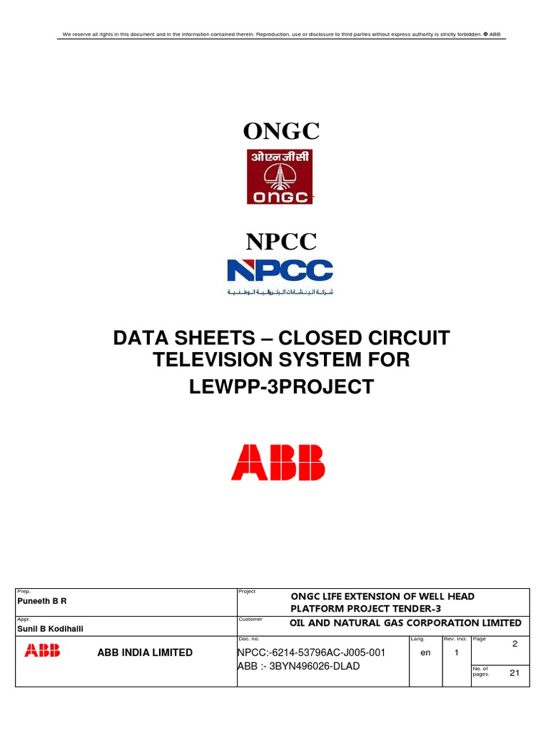 CCTV System Data Sheets for ONGC Project