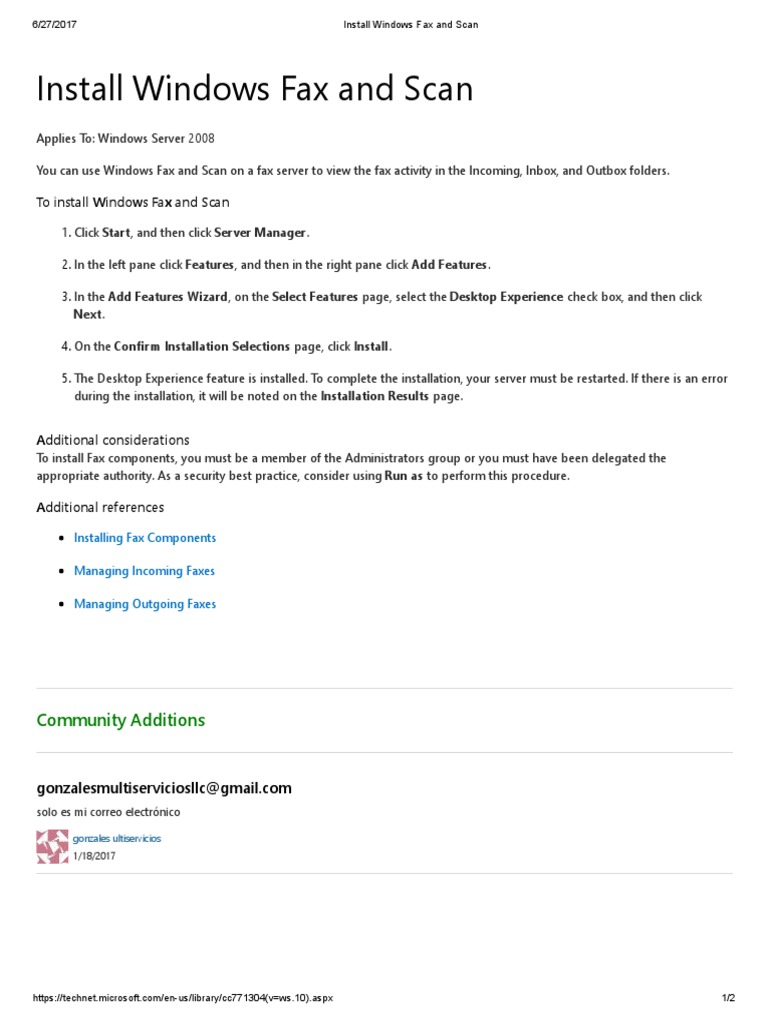 To install Fax components, you must be a member of the Administrators group or you must have been delegated the