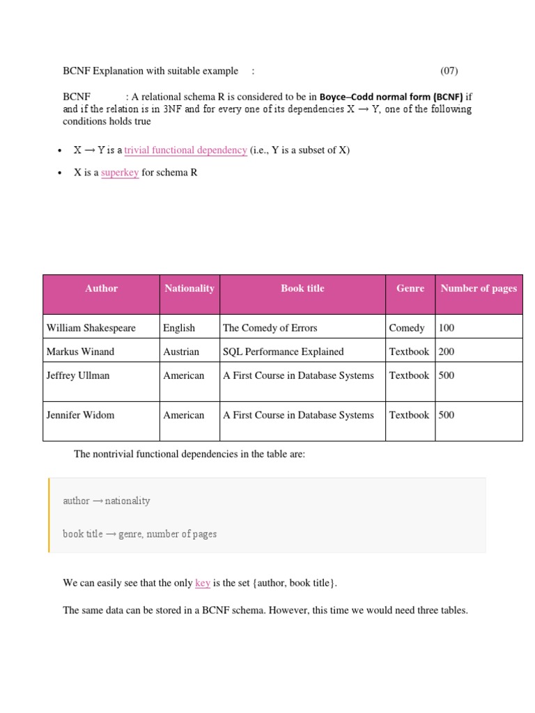Decide why BCNF is used and how it differs from 3 NF? (06)