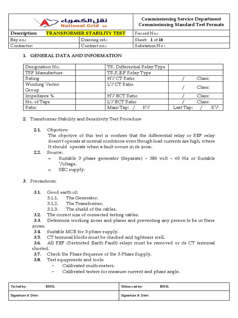 2. Transformer Stability and Sensitivity Test Procedure