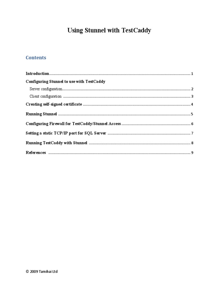 Running TestCaddy with Stunnel ....................................................................................................... 8