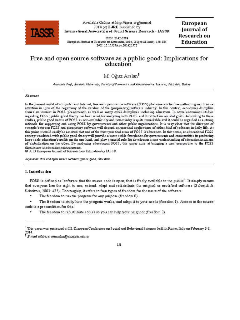 Keywords: Free and open source software, public good, education
