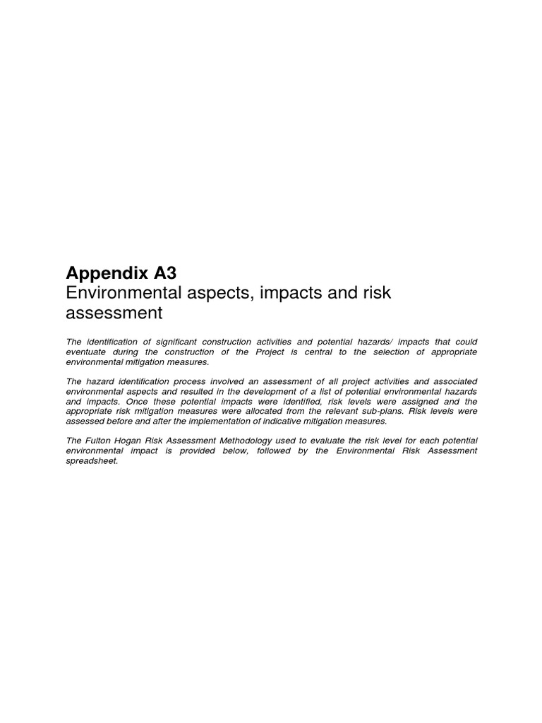 environmental impact is provided below, followed by the Environmental Risk Assessment