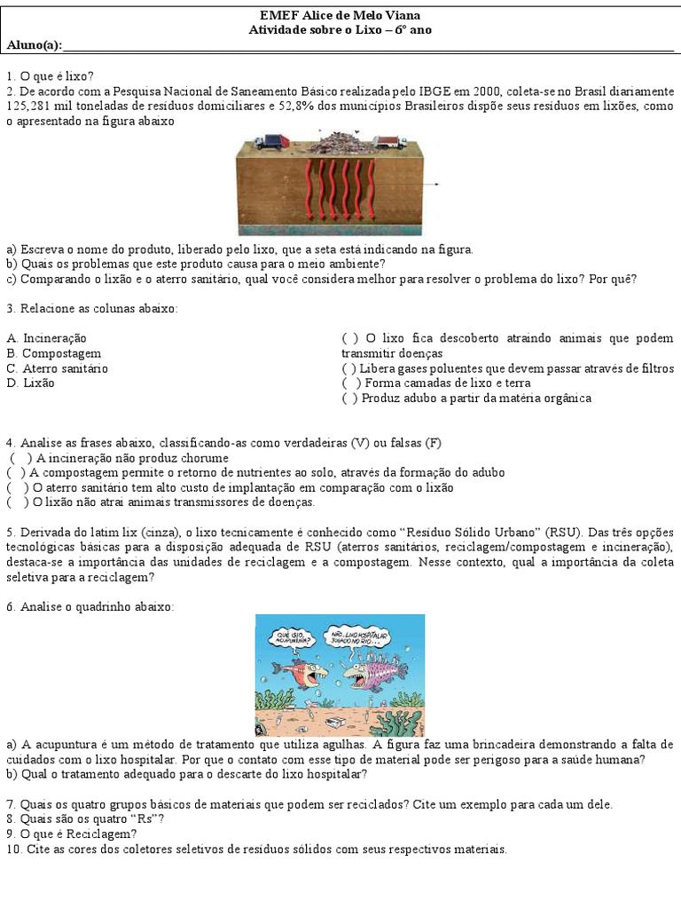 Atividade sobre o Lixo 6 ano