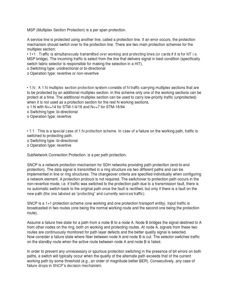 protect at a time. The additional multiplex section can be used to carry low-priority traffic (unprotected)