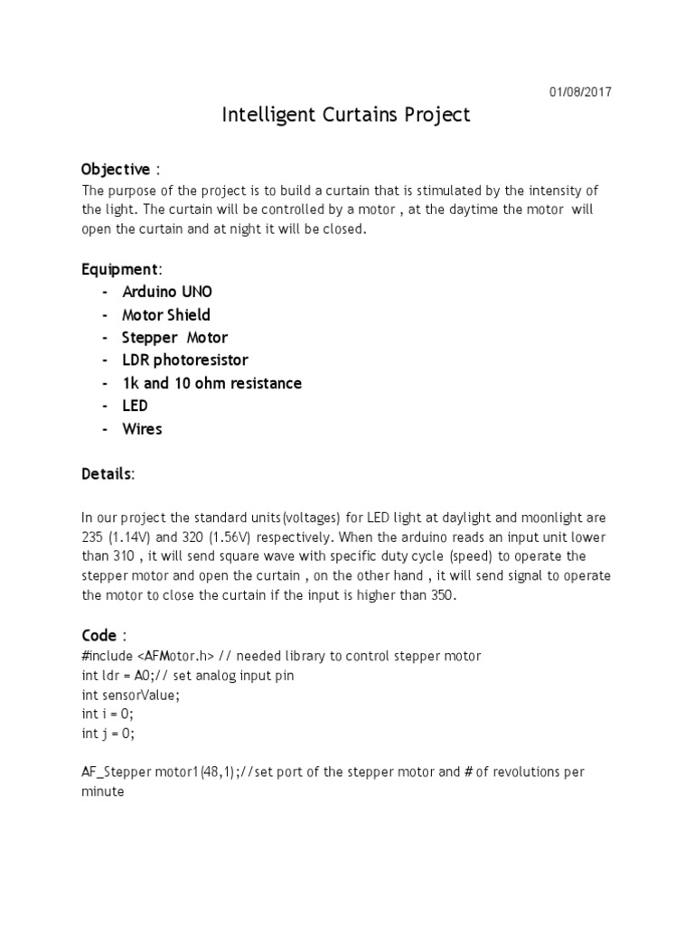 Thepurposeoftheprojectistobuildacurtainthatisstimulatedbytheintensityof