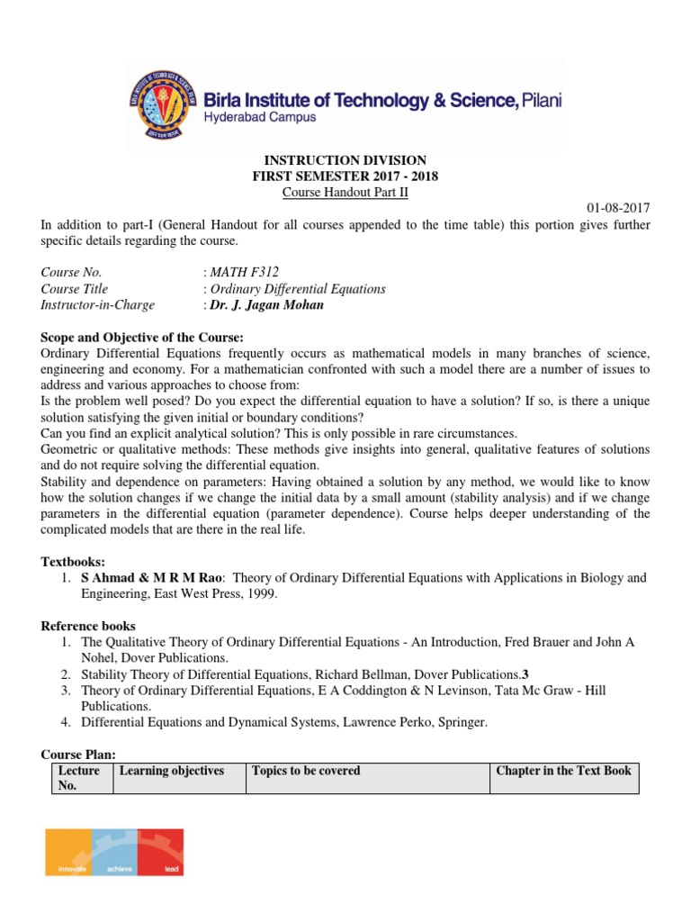 Notices: All notices regarding MATH F312 will be displayed on CMS