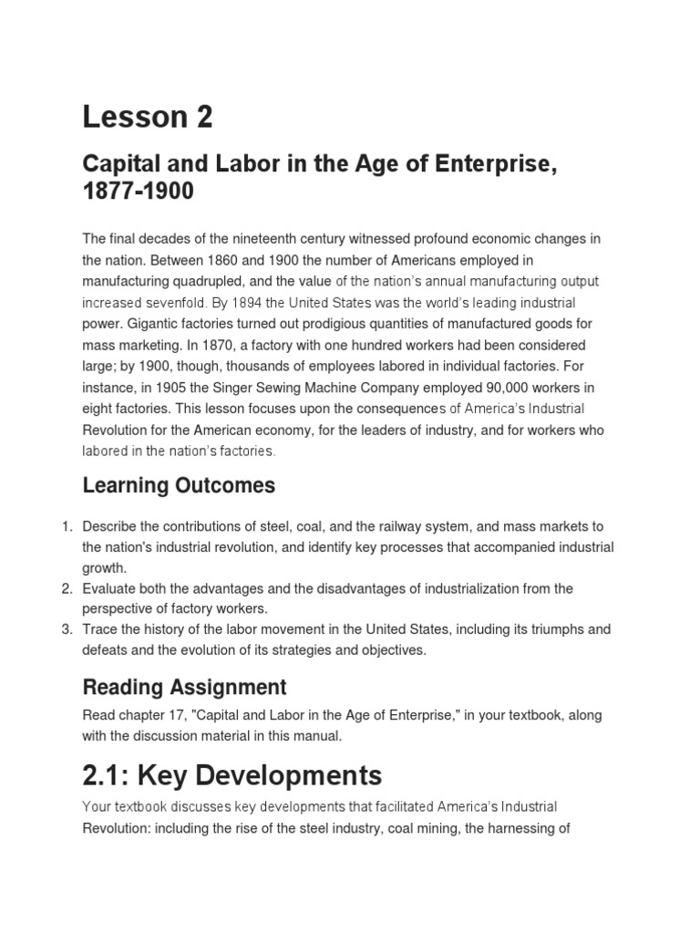 Read chapter 17, "Capital and Labor in the Age of Enterprise," in your textbook, along