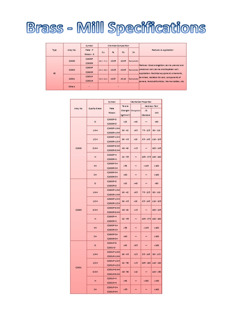 C2680 64.0 - 68.0 <0.05 <0.05 Remainder processed well; can be electroplated well.