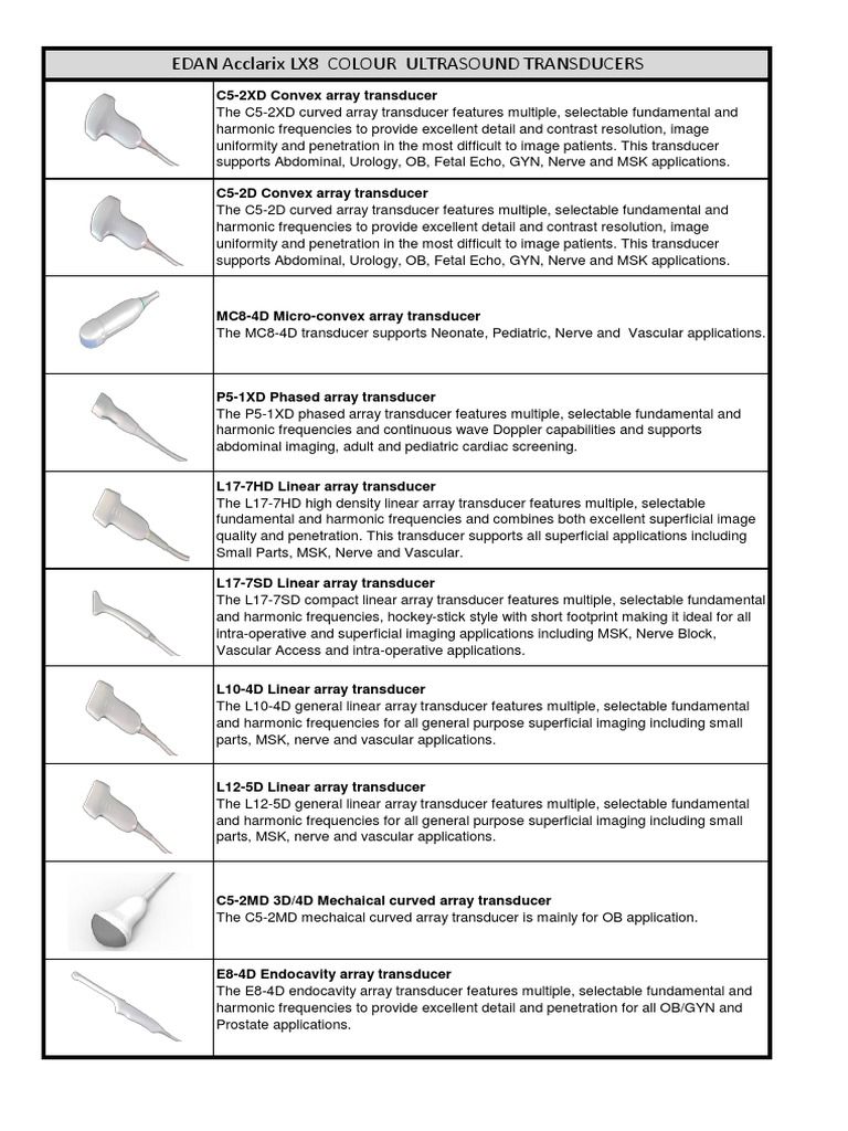 EDAN Acclarix LX8 COLOUR ULTRASOUND TRANSDUCERS