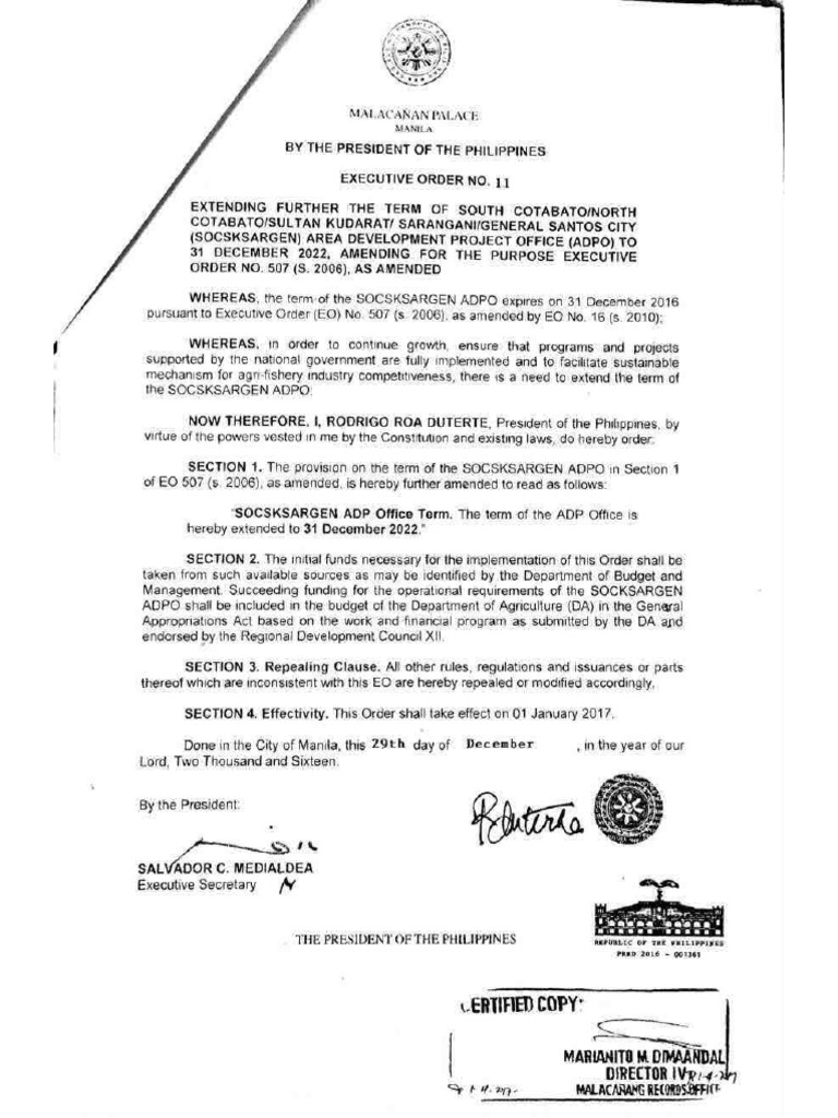 WHEREAS, the term of the SOCSKSARGEN ADPO expires on 31 December 2016