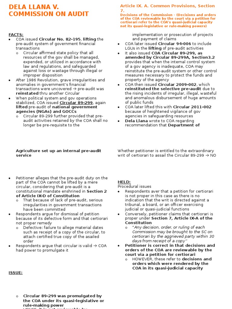 audit activities retained by the COA shall no Dela Llana wrote to COA regarding