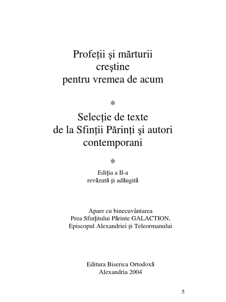 Profeţii Şi Mărturii Creştine Pentru Vremea de Acum