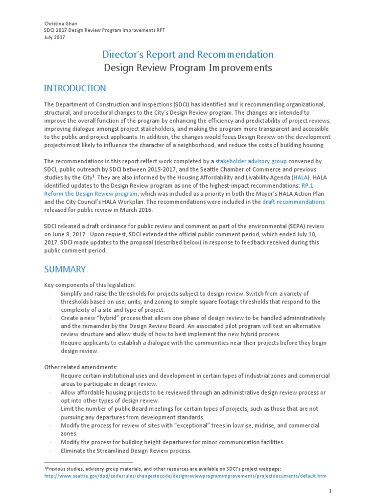 Christina Ghan SDCI 2017 Design Review Program Improvements RPT July 2017
